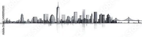 © Margarita, Naklejka premium Minimalist Philadelphia Skyline Line Art Black and White Modern Architecture Symmetrical Design