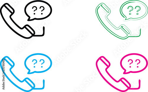 Fototapeta premium Minimalist phone icon, question mark speech bubble, colorful outlines, simple graphic design, flat illustration style, communication concept, inquiry symbol, customer service icon, multicolor variatio