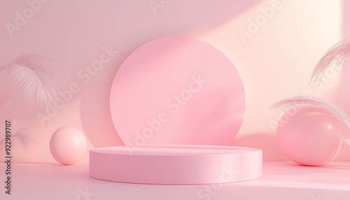 © pisan thailand, Fototapeta premium Minimalist Pink Display Pedestal with Soft Lighting