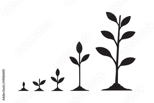 Obraz premium Minimalist plant growth symbol black silhouette vector outline on white...