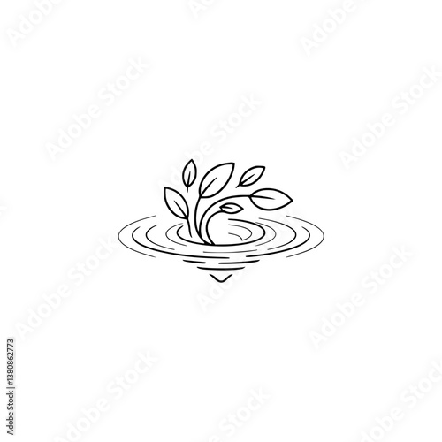 Fototapeta premium Minimalist Pond Plant Icon: Simple Line Art, Calm & Zen