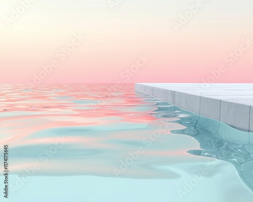 © DIAHIMAGESNEW, Obraz premium Minimalist poolside scene at sunset.