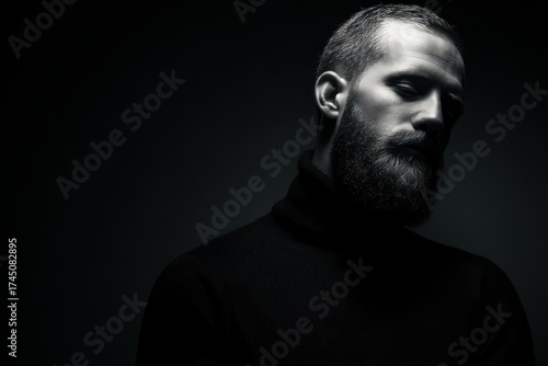 © Ольга Лукьяненко, Naklejka premium Minimalist Portrait Bearded Man Black Turtleneck