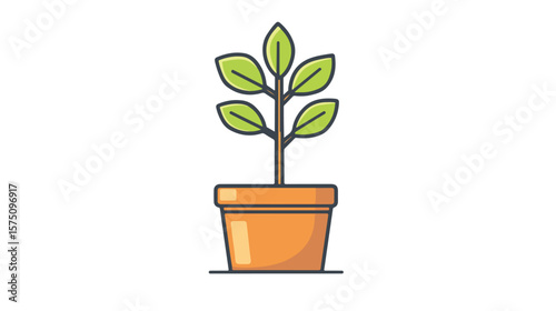 © Mitchel, Obraz premium Minimalist Potted Plant Outline Icon for Interior Designs