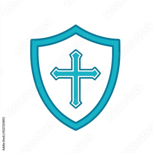Obraz premium Minimalist prevention shield with a cross, cleanly outlined, white.