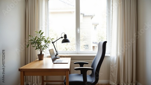 © Wahyu, Fototapeta premium Minimalist Productivity: A Serene Scandinavian Home Office