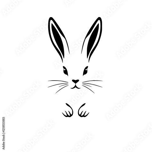 Obraz premium Minimalist Rabbit Design: Black and White, Rabbit Portrait with Long Ears,...