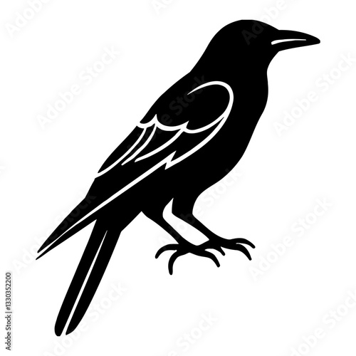 © Reytr, Fototapeta premium Minimalist Raven Full Body Logo Black and White Outline Line Art Drawing of Bird Silhouette