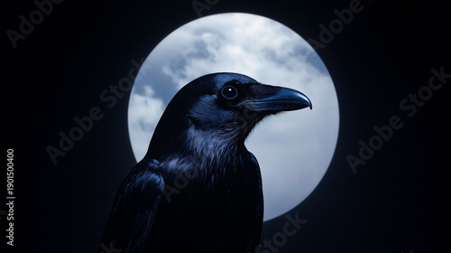 © vannet, Fototapeta premium Minimalist raven spirit in runic circle, stormy sky background, AI generated
