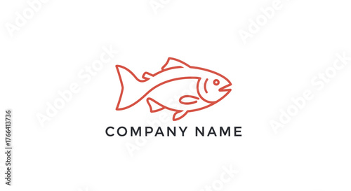© Kiki, Obraz premium Minimalist Red Line Art Fish Logo Design for Seafood Company.