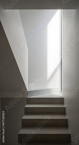 Obraz premium Minimalist residential staircase with clean design and soft natural light.