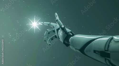 Obraz premium Minimalist Robotic Hand Reaching for a Glowing Star in a Starry Night Sky....