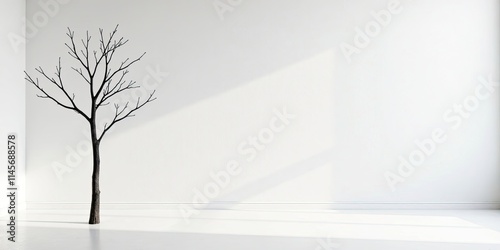 © DeeDay, Obraz premium Minimalist Room Interior Design Featuring a Bare Branch Tree Silhouette Against a White Wall