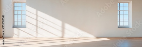 © Ryzhkov, Obraz premium Minimalist Room Transformation Sunlit Hardwood Floor in Open Space - Ideal for Interior Design Inspiration and Lifestyle Marketing in Modern Home Organization Solutions