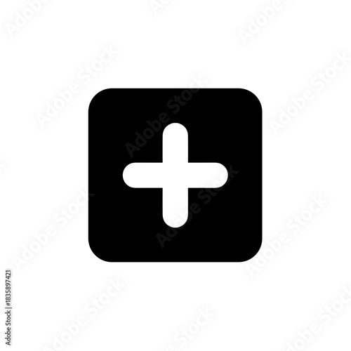 Fototapeta premium Minimalist Rounded Square Plus Sign in Black and White Icon Symbol