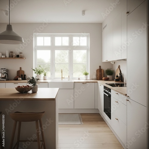 © Photozilla , Fototapeta premium Minimalist Scandinavian Kitchen – Ultra-Photorealistic Modern Interior Photography