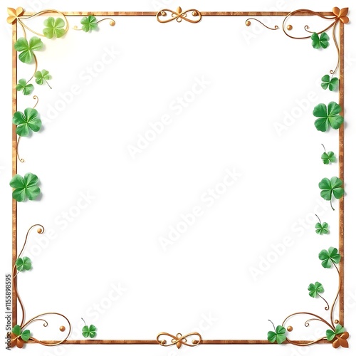 © Arif Al Mahmud, Fototapeta premium Minimalist Shamrock Leaves and Decorative Flourishes - Vector Paper Art Illustration