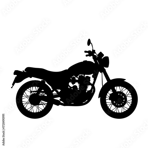 Obraz premium Minimalist Silhouette Classic Motorcycle Ride Transportation Vehicle on White...