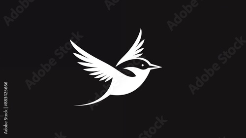© Miva, Obraz premium Minimalist Silhouette of a Bird in Flight on Black Background