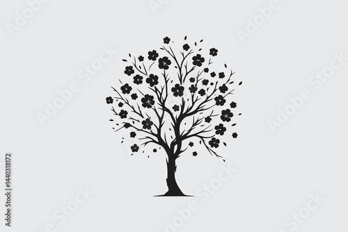 © TanjumAra, Obraz premium minimalist silhouette of cherry blossom tree in black and white