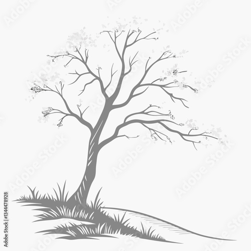 © Tarek, Obraz premium Minimalist Silver Maple tree vector design on a white background. Simple, elegant, and modern botanical illustration for logos, prints, and digital art