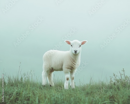 © Sofia, Fototapeta premium Minimalist Single Lamb on Grass
