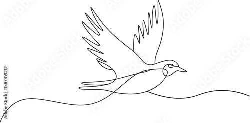 Obraz premium Minimalist single line drawing of a bird in flight on white background