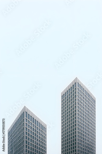 Obraz premium Minimalist Skyscraper Architectural Symmetry: Two Modern Buildings Against a...