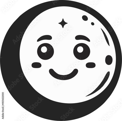 © Gian, Fototapeta premium Minimalist Smiling Full Moon Icon – Cute Black and White Cartoon Lunar Face Vector