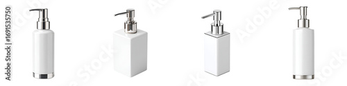 Fototapeta premium Minimalist Soap Dispensers: Set of White Ceramic and Lotion Bottles