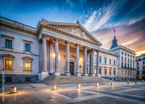 © Man888, Fototapeta premium Minimalist Spanish Parliament Building at Dawn