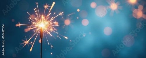© nattapong, Obraz premium Minimalist sparkler burst on pastel blue, soft focus, minimal, festive