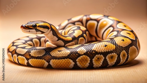 Obraz premium Minimalist Spider Morph Ball Python in Serene Natural Setting, Captivating Scales and Subtle Colors, Perfect for Reptile Enthusiasts and Nature Photography Lovers