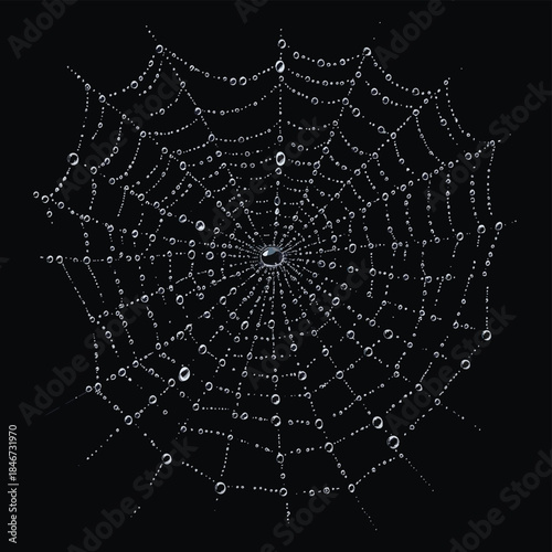 © Nattapat, Obraz premium Minimalist Spiderweb with Dewdrops Vector Art , vector style simple color