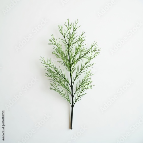 © Vadym, Fototapeta premium Minimalist sprig of faux plants with light green delicate foliage on dark stem. Artificial plant branch offers simple, elegant decorative accent for home decor, weddings, parties, craft projects.