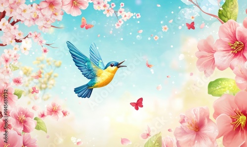© Tunsale, Fototapeta premium Minimalist Spring Sale Banner Template with Fresh Floral Elements and Pastel Background. AI generated illustration.