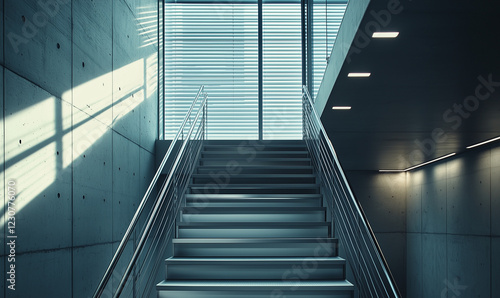 © Sekai, Obraz premium Minimalist Staircase Boasting Light Stainless Steel and Contemporary Elegance