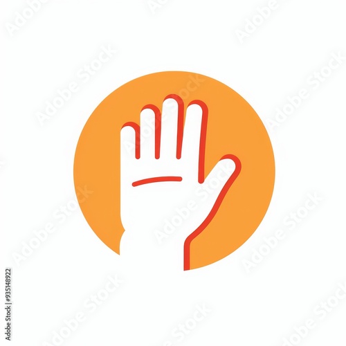 Obraz premium Minimalist Stop Sign Illustration Featuring an Outstretched Hand in an Orange Circle