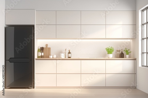 Fototapeta premium Minimalist style kitchen with modern white accents 3d render
