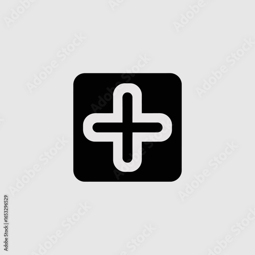Obraz premium Minimalist, stylized, solid glyph style logo of a plus sign in a rectangle,...