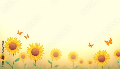 Fototapeta premium Minimalist sunflower landscape with a clean, aesthetic composition