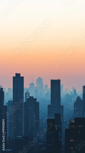 © Andrew, Fototapeta premium Minimalist Sunset City Skyline with Soft Color Palette