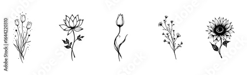 Fototapeta premium Minimalist Surreal Wildflower Graphic Vector Illustration Set
