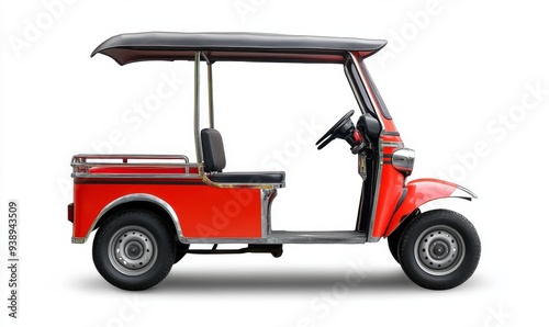 © cosmosgod, Obraz premium Minimalist Thai Tuk-Tuk Silhouette on Abstract White Background: Iconic Urban Transportation Symbol. Elegant Representation of Bangkok's Cultural Heritage and Modern City Life. Stylish Graphic Design