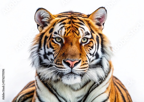 Fototapeta premium Minimalist Tiger Isolated on White Background - Wildlife Stock Photo