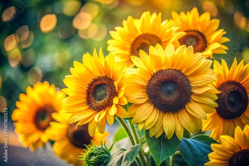 © Oliver, Fototapeta premium Minimalist Tilt-Shift Photography of a Vibrant Sunflower Bouquet Against a Soft Background, Capturing the Essence of Nature's Beauty in a Unique Perspective