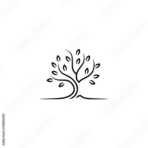 Fototapeta premium Minimalist Tree Logo: Black Line Art on White Background