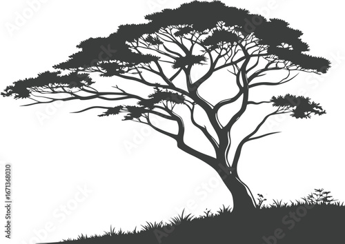 © Zain, Obraz premium Minimalist Tree Silhouette Vector Background