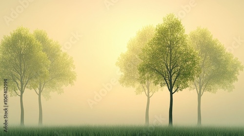 © Muhammad, Fototapeta premium Minimalist Tree Silhouettes in Soft Green Lighting