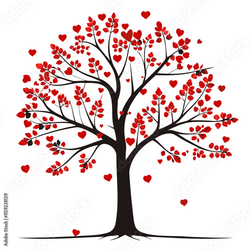 Obraz premium Minimalist Tree Vector Illustration Design Black and Red Color For Valentine's Day